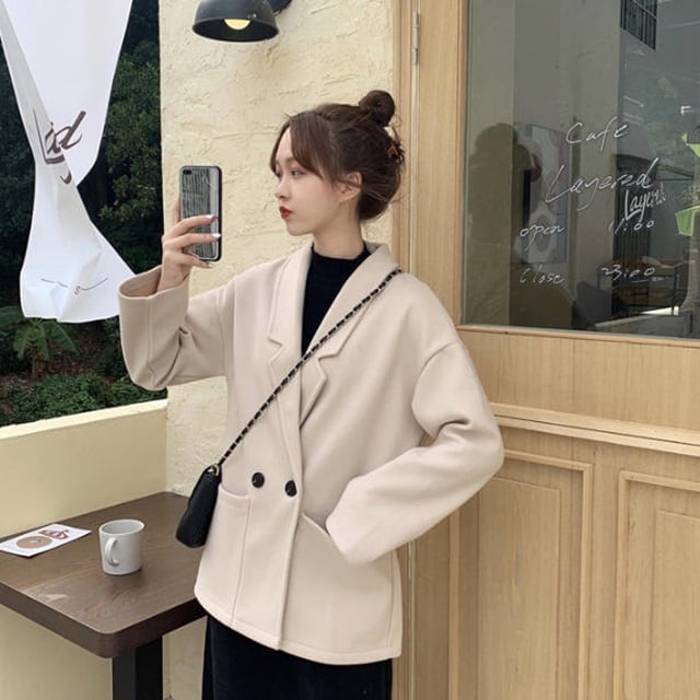 【送料無料】テーラードジャケット 春コート アウター 羽織 キレイ目 きちんと感 上品 ゆったり 無地 長袖 シンプル ベーシック カジュアル レトロ 大人可愛い 春コーデ お出かけ デート 通勤 デイリー 普段使い 着回し OT-071IU