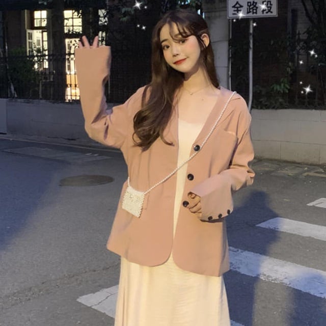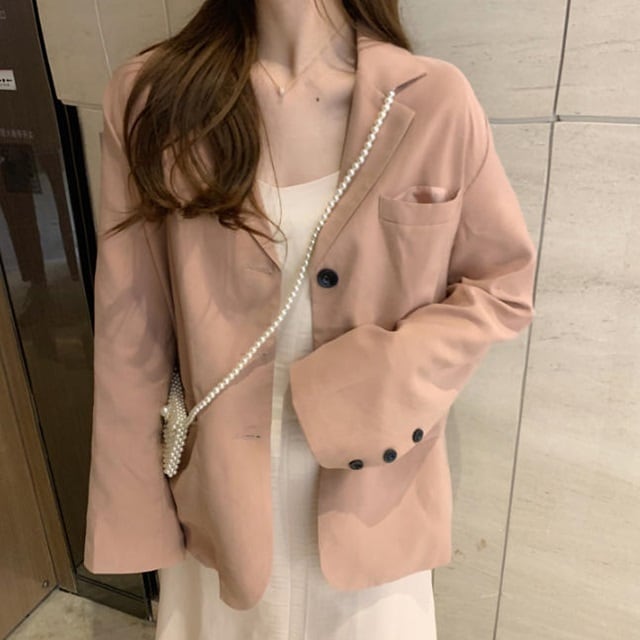 肌なじみの良いピンクベージュのテーラードジャケット♪