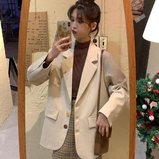 【送料無料】テーラードジャケット 春コート アウター ボタンデザイン おしゃれ ゆったり 無地 ベーシック シンプル 大人可愛い キレイ目 カジュアル レトロ お出かけ デート 通勤 デイリー 普段使い フォーマル 着回し OT-053IU