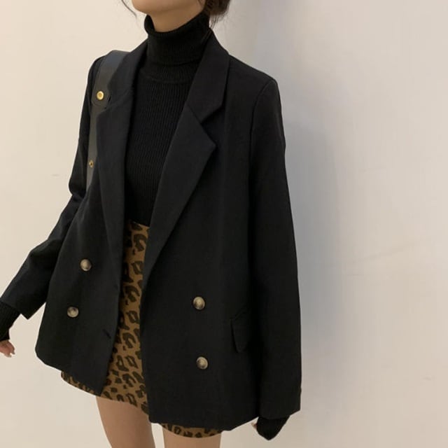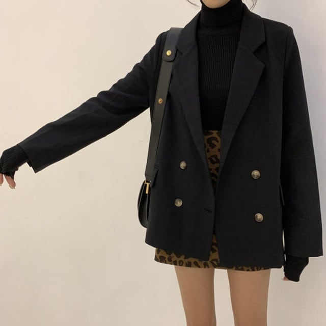 【送料無料】テーラードジャケット 春コート アウター ゆったり 着痩せ ブラック シック クール レトロ マニッシュ カジュアル 大人可愛い 無地 ベーシック シンプル お出かけ デート 通勤 オフィス デイリー 普段使い OT-056IU