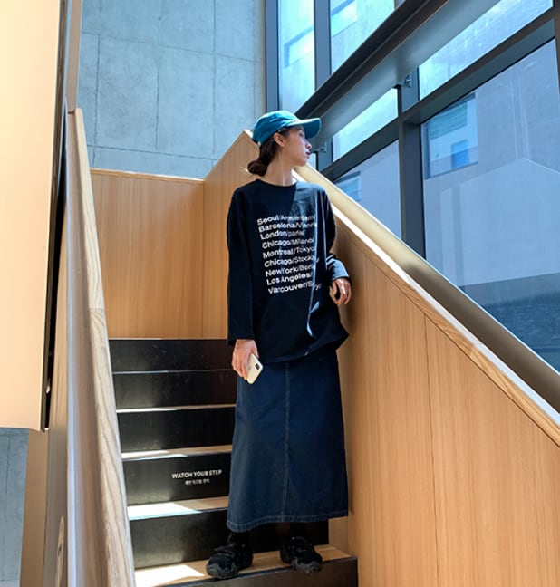 フロントに英字テキストプリントした長袖Tシャツ全2色です♡ シンプルだからどんなボトムスとも相性ばっちり◎ デイリーに使う普段着の中でもオシャレを忘れず、気軽に着こなせスタイリッシュに決まる大人カジュアルです♬