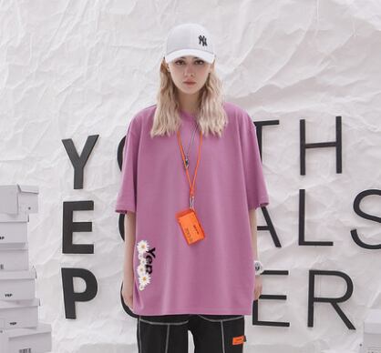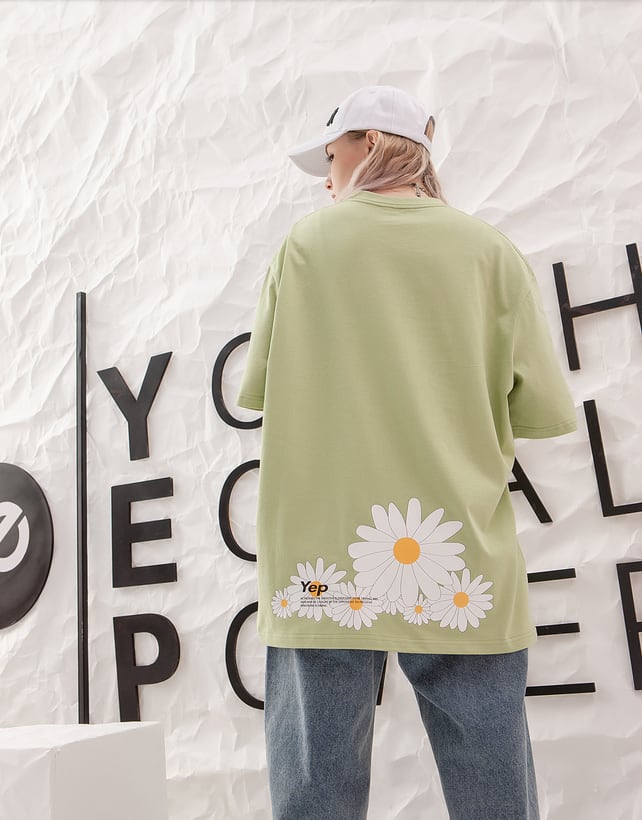 【送料無料】6カラー ゆるTシャツ デイジー ボトムプリント コットン100% 半袖 丸首 ストリートファッション カットソー ゆるカジ ルーズフィット プルオーバー 大人カジュアル ベーシック シンプル 可愛いめ キュート ラブリー オシャレ 春夏 グリーン イエロー ホワイト ブラック ブルー パープル ピンク 通学 レジャー スポーティ 旅行 普段使い シティー お出かけ 着回し デイリー TS-010KW