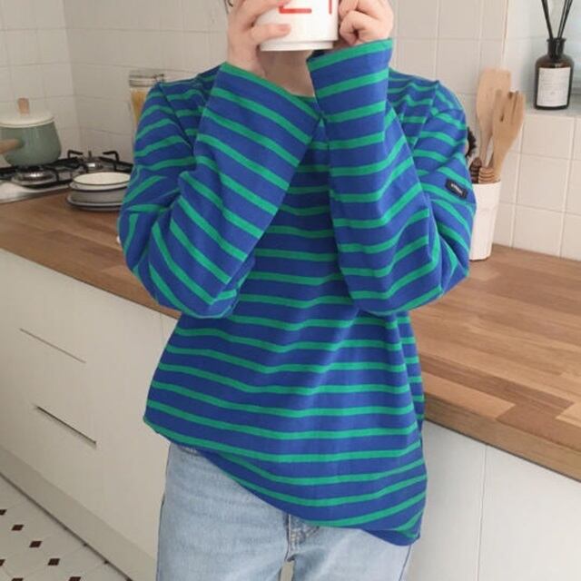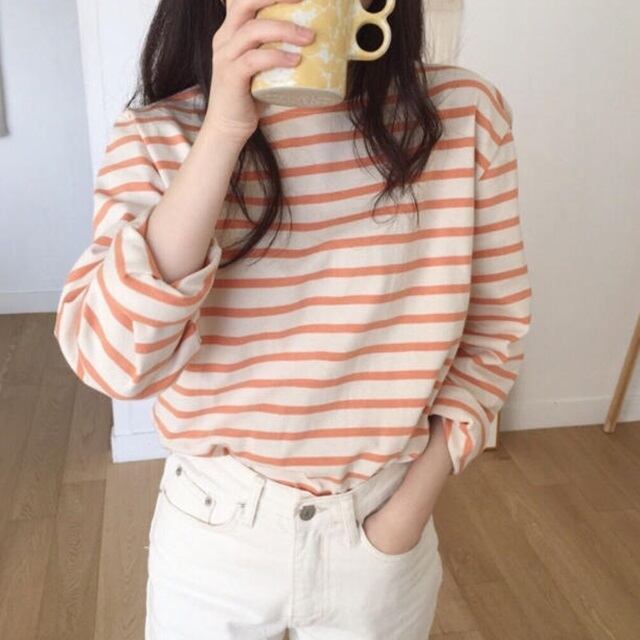 カラフルな色合いが春夏らしいボーダーロングTシャツ♪