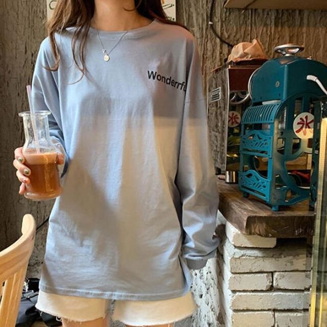【送料無料】ロングTシャツ トップス 英字 ロゴ 写真 プリント 長袖 ゆったり レトロ カジュアル 大人可愛い シンプル ベーシック お出かけ デート 普段使い デイリー 着回し TP-168IU