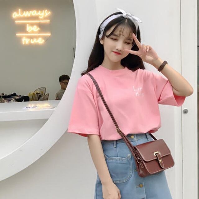 【送料無料】Tシャツ ロゴTシャツ 半袖Tシャツ トップス 英字 ロゴ ビッグシルエット ゆったり 半袖 レトロ カジュアル ガーリー 可愛い お出かけ デート 普段使い デイリー 着回し TP-169IU