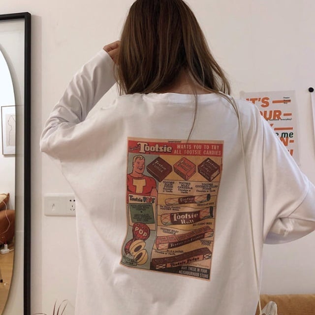 【送料無料】ロングTシャツ プリントTシャツ トップス ビッグシルエット イラスト おしゃれ ゆったり 長袖 レトロ アメカジ 大人可愛い カジュアル お出かけ デート 普段使い 着回し TP-174IU