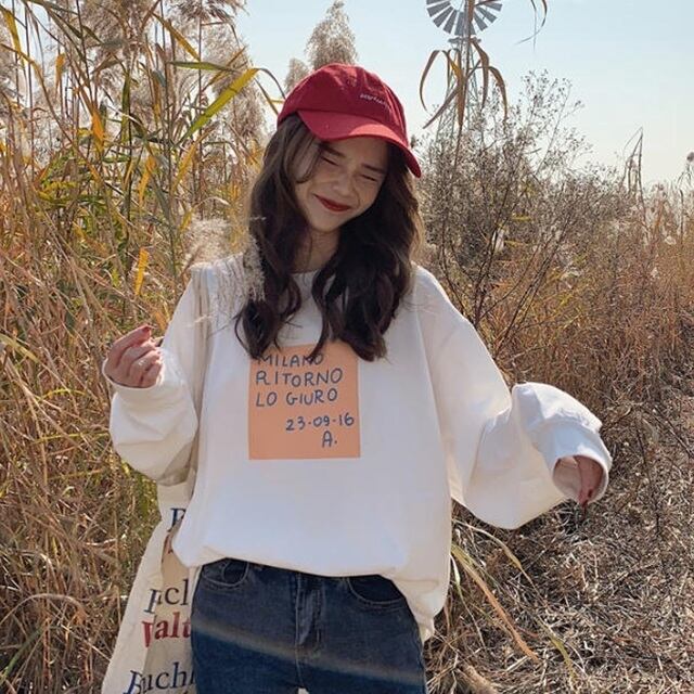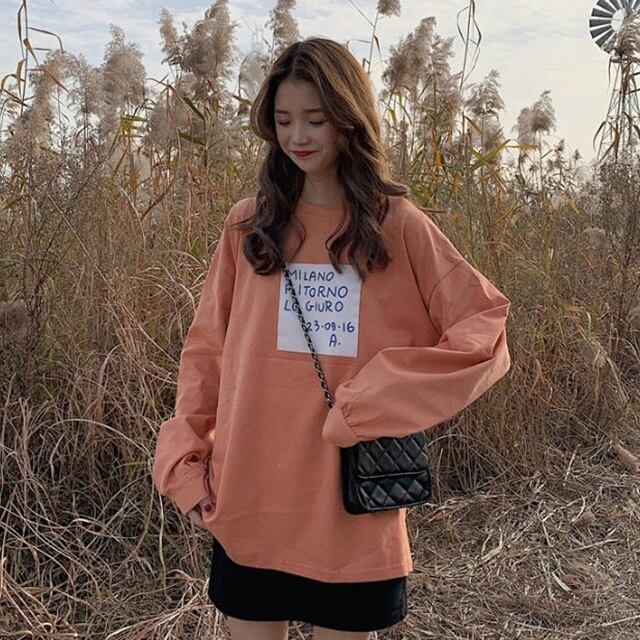 【送料無料】ロングTシャツ ロゴTシャツ トップス ドロップショルダー プリント ゆったり 長袖 シンプル おしゃれ 大人可愛い カジュアル レトロ お出かけ デート 普段使い デイリー 着回し TP-197IU