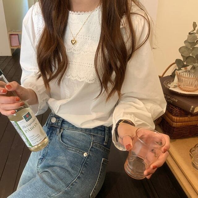 【送料無料】ブラウス シャツ トップス レース 後ろボタン バックコンシャス 長袖 無地 キレイ目 上品 レトロ フェミニン ガーリー カジュアル お出かけ デート 大人可愛い デイリー 着回し 普段使い TP-203IU