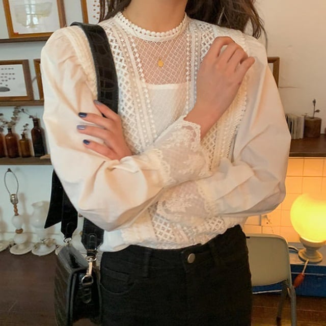 【送料無料】ブラウス シャツ トップス レース シースルー 長袖 ゆったり エレガント フェミニン ガーリー キレイ目 上品 セクシー お出かけ デート 普段使い 着回し デイリー TP-206IU