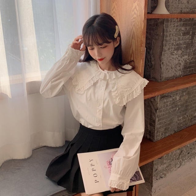 【送料無料】ブラウス シャツ トップス レース キレイ目 上品 長袖 ゆったり 無地 シンプル フェミニン ガーリー 大人可愛い お出かけ デート 普段使い 着回し デイリー TP-212IU
