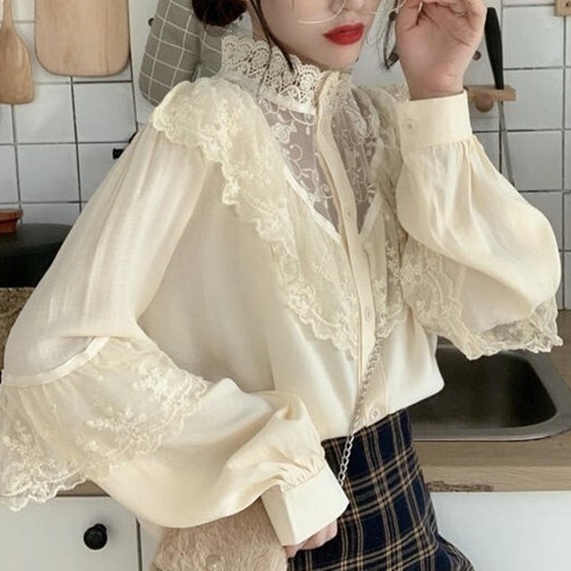 【送料無料】ブラウス シャツ トップス レース シースルー 花柄 ハイネック 長袖 ゆったり エレガント ガーリー フェミニン 大人可愛い お出かけ デート 普段使い 着回し デイリー TP-214IU