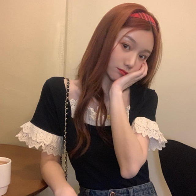 【送料無料】Tシャツ ブラウス トップス スクエアネック 半袖 ゆったり 無地 レース 上品 キレイ目 大人可愛い ガーリー フェミニン お出かけ デート 普段使い デイリー TP-199IU
