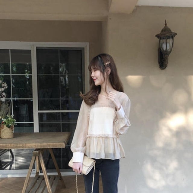 【送料無料】ブラウス トップス シースルー レース 異素材 上品 キレイ目 ペプラム 長袖 ゆったり フェミニン ガーリー レトロ 大人可愛い お出かけ デート 普段使い デイリー 着回し TP-233IU