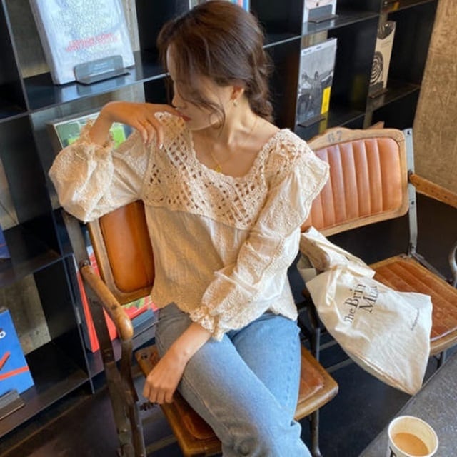 パンチングレースでおしゃれな透け感を楽しめるブラウス♪