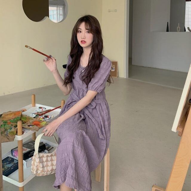 【送料無料】ワンピース 膝丈 リボン バックコンシャス Aライン シンプル おしゃれ 半袖 ゆったり レトロ カジュアル ガーリー お出かけ デート 普段使い デイリー OP-133IU