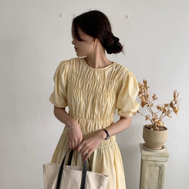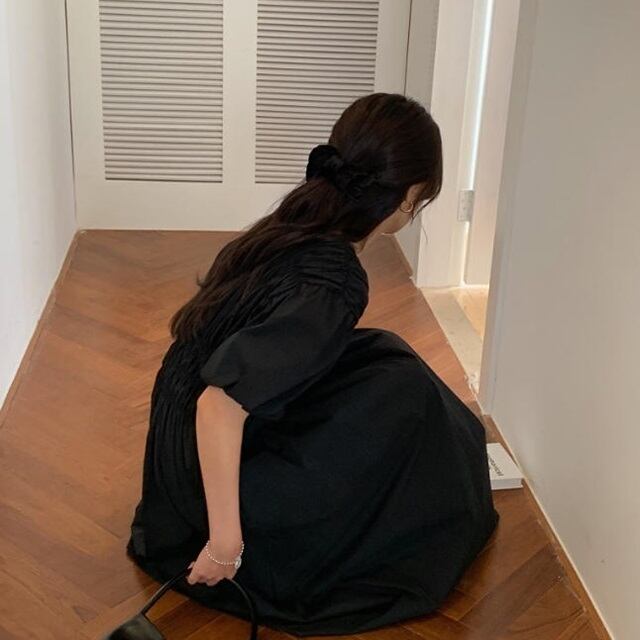 【送料無料】ワンピース ロング ギャザー フレア Aライン 体型カバー 半袖 ゆったり シンプル おしゃれ レトロ カジュアル 大人可愛い フェミニン お出かけ デート 普段使い デイリー OP-136IU