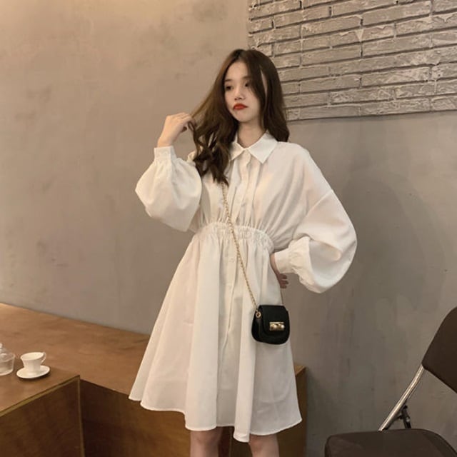 ボリューム袖が可愛いデザインのシャツワンピース♪