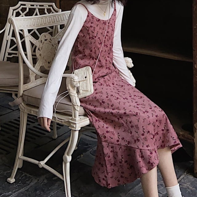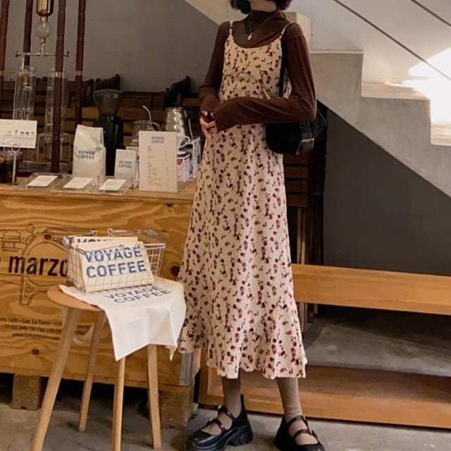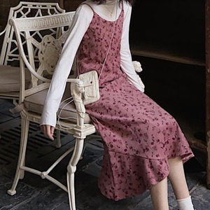 【送料無料】花柄 キャミソールワンピース ロング ミモレ丈 ゆったり フレア カジュアル レトロ ガーリー フェミニン 大人可愛い おしゃれ お出かけ デート 普段使い デイリー 春コーデ 着まわし OP-142IU
