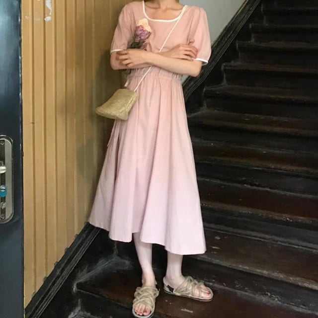 【送料無料】ワンピース ロング シャーベットカラー 半袖 ゆったり 無地 シンプル ベーシック おしゃれ 大人可愛い ガーリー フェミニン キレイ目 上品 お出かけ デート 普段使い デイリー OP-144IU