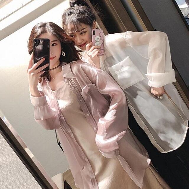 【送料無料】シャツ ブラウス シアー 透け トップス トレンド 大きいサイズ セクシー 光沢 大人可愛い カジュアル シンプル ベーシック お出かけ デート 普段使い デイリー 着回し TP-255IU