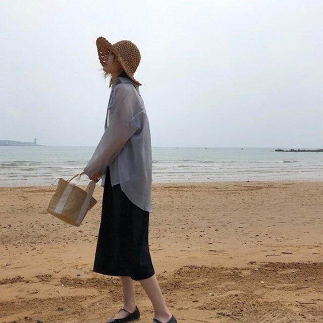 【送料無料】シャツ ブラウス トップス 透け シアー トレンド ビッグシルエット 長袖 ゆったり 無地 シンプル ベーシック セクシー 大人可愛い こなれ感 お出かけ デート 普段使い デイリー 着回し リゾート TP-256IU