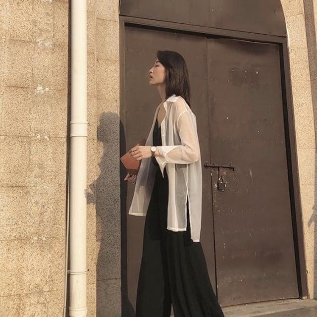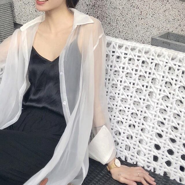 【送料無料】ブラウス シャツ トップス 透け シアー ライトアウター トレンド 羽織 ゆったり 無地 長袖 シンプル セクシー 大人可愛い こなれ感 お出かけ デート 普段使い デイリー 着回し TP-257IU