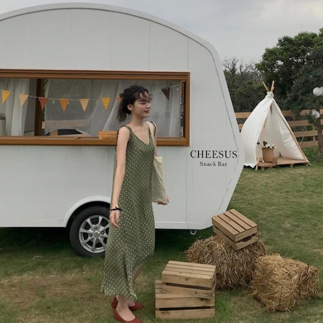 おしゃれなドット柄ジャンパースカート♪