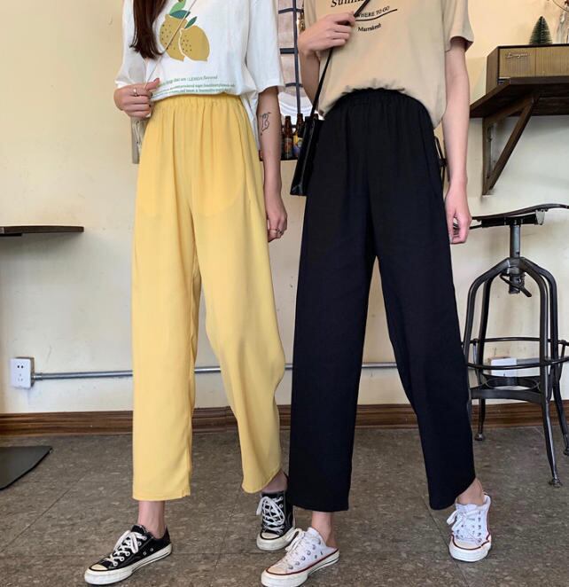 【送料無料】ワイドパンツ ロングパンツ ストレート ボトムス ハイウエスト ウエストゴム ゆったり 体型カバー 無地 シンプル ベーシック 大人可愛い カジュアル お出かけ デート 普段使い デイリー 着回し ルームウェア BM-043IU