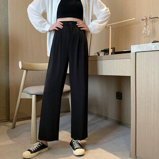 【送料無料】ワイドパンツ ロングパンツ ボトムス ハイウエスト 脚長 無地 カジュアル 大人可愛い シンプル ベーシック お出かけ デート 普段使い デイリー 着回し BM-044IU