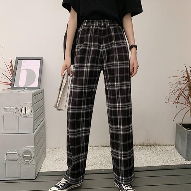 レトロな印象のシンプルなチェック柄ワイドパンツ♪