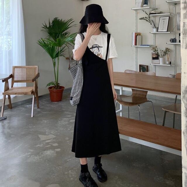 【送料無料】ジャンパースカート ロング おしゃれ ゆったり 体型カバー 着痩せ 無地 個性的 お出かけ デート 普段使い デイリー 着回し 春コーデ OP-154IU