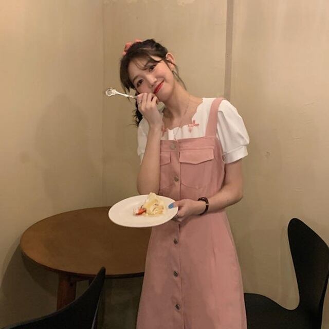 【送料無料】ジャンパースカート 膝丈 ゆったり Aライン フレア シンプル ベーシック ガーリー フェミニン カジュアル お出かけ デート 普段使い 着まわし デイリー 春コーデ OP-155IU