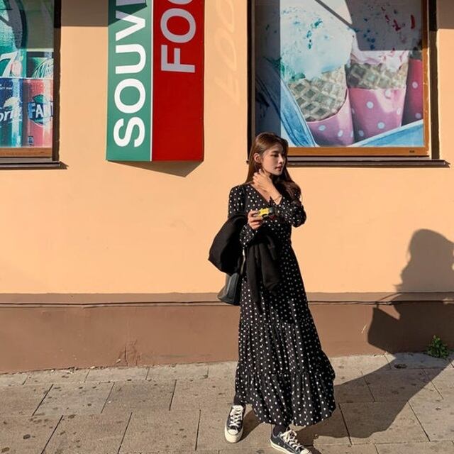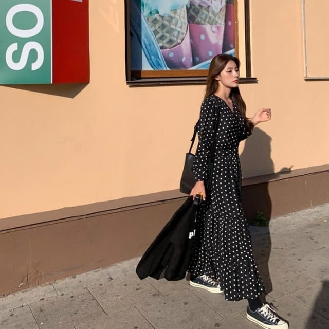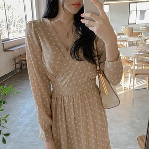 女性らしさのあるドット柄ワンピース♪