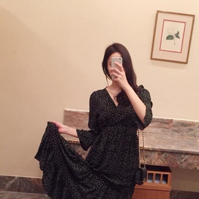 レトロな印象のドット柄ワンピース♪
