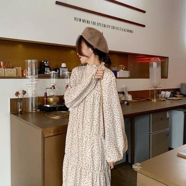 【送料無料】ドット柄 ワンピース ティアード ロング フレア ふんわり 長袖 ゆったり シンプル レトロ カジュアル 大人可愛い カジュアル デイリー 普段使い 着回し OP-184IU