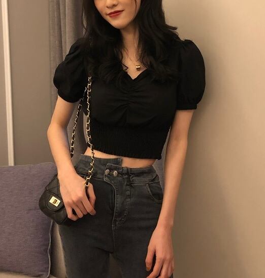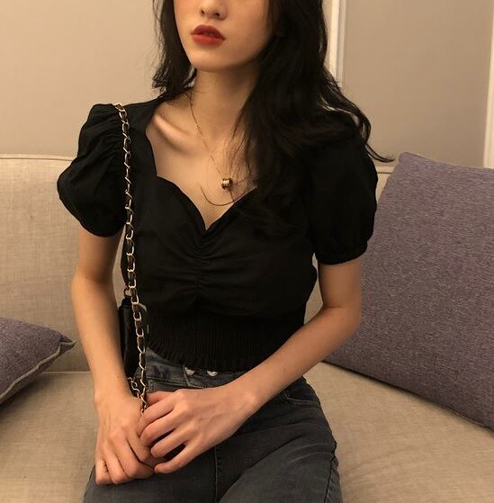 【送料無料】コンパクトパフスリーブブラウス ショート丈 短丈 半袖 無地 レディース 夏 韓国 ガーリー キュート レトロ 大人フェミニン 大人可愛い カジュアル 通学 デイリー 普段使い タウン 休日 お出かけ 女子会 デート ホワイト ブラック 2色 TP-020KI