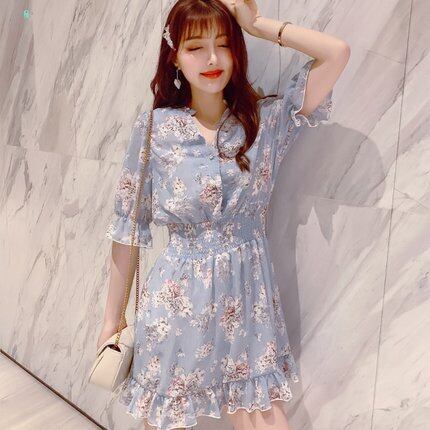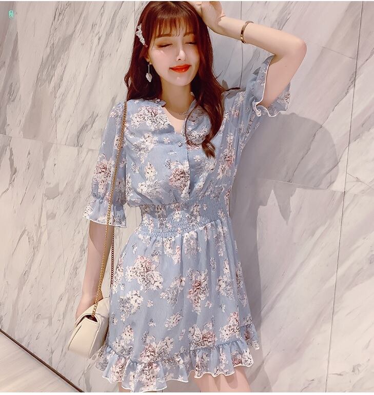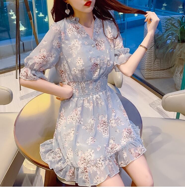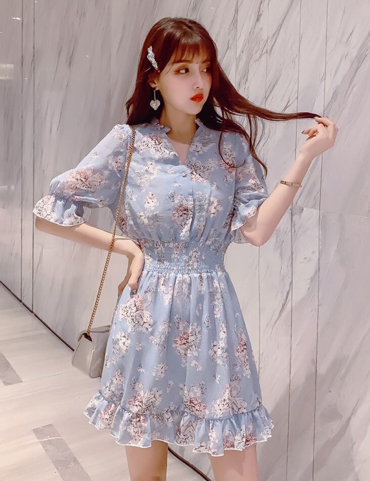 【送料無料】花柄ワンピース シフォン ミニ丈 ベルフラワー レディース 春 夏 韓国 ガーリー キュート フェアリー 大人フェミニン レトロ 大人可愛い 通学 デイリー 普段使い タウン 休日 お出かけ 女子会 デート ピンク ライトブルー オフホワイト 3色 0P-100KI