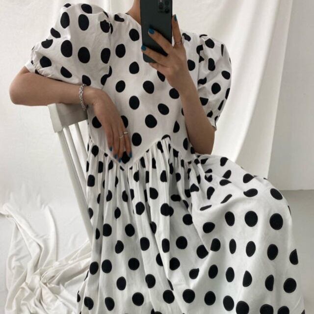 ルーズなシルエットが可愛いドット柄ワンピース♪