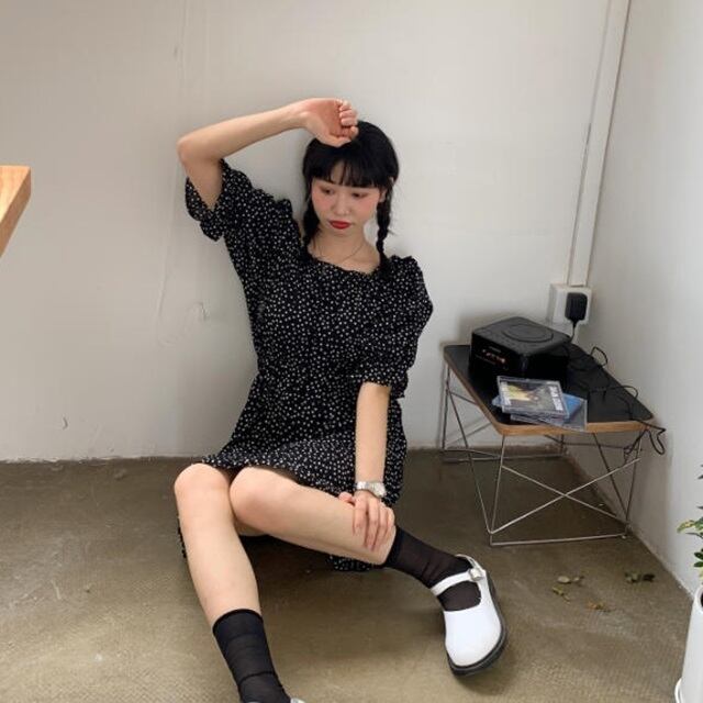 【送料無料】ドット柄 ワンピース ミニ丈 フレア スクエアネック シンプル おしゃれ レトロ ガーリー お出かけ デート 普段使い デイリー OP-200IU