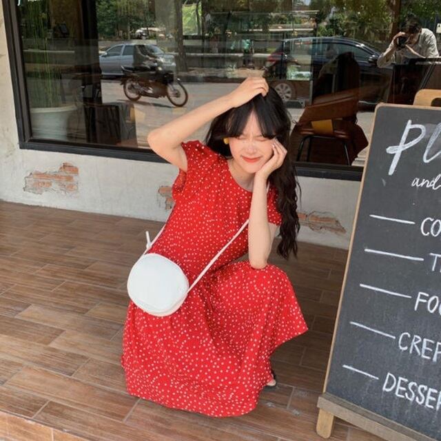 ゆったりシルエットが可愛いドット柄ワンピース♪