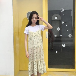 【送料無料】花柄 キャミソールワンピース 膝丈 ゆったり 裾フレア おしゃれ レトロ カジュアル 大人可愛い お出かけ デート 普段使い デイリー 着回し OP-207IU