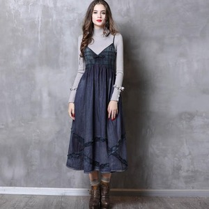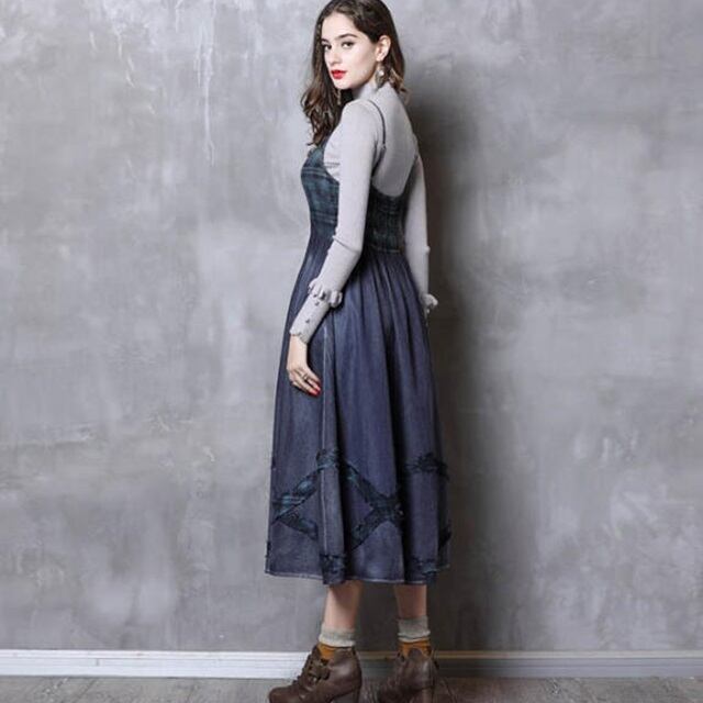 【送料無料】デニムジャンパースカート ロング ミモレ丈 チェック柄 レトロ 大人可愛い カジュアル お出かけ デート 普段使い デイリー 着回し OP-270IU
