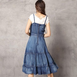 【送料無料】デニムジャンパースカート 膝丈 大きいサイズ ティアード 刺繍 ガーリー カジュアル 大人可愛い レトロ お出かけ デート 普段使い デイリー OP-298IU