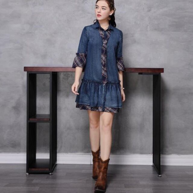 ネクタイ付きのスタイリッシュなデニムワンピース♪