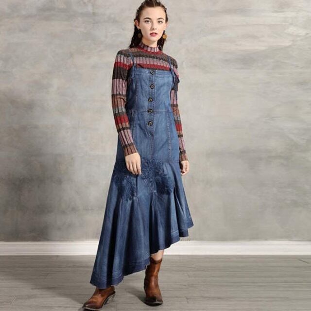 【送料無料】デニムジャンパースカート ロング アシンメトリー カジュアル 大人可愛い おしゃれ お出かけ デート 普段使い デイリー 着回し OP-301IU
