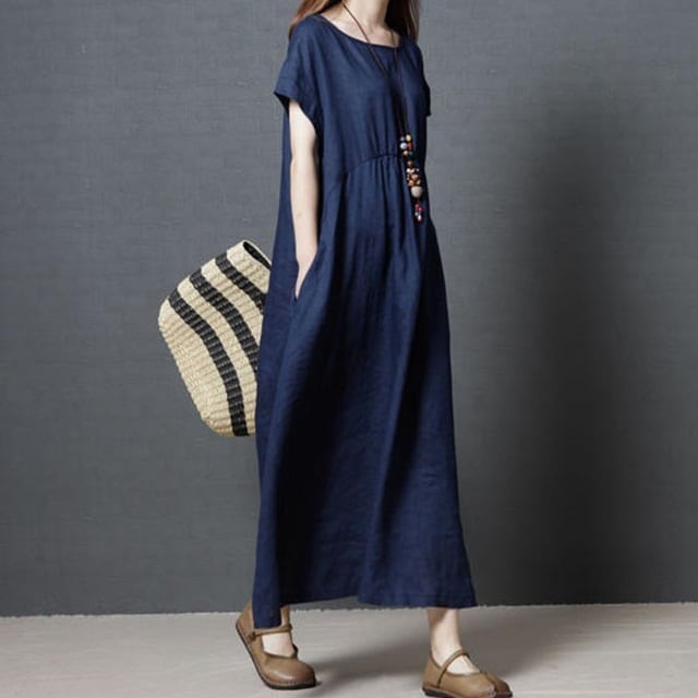 【送料無料】リネンワンピース ロング ナチュラル マキシ丈 コットン 半袖 ゆったり 大人可愛い カジュアル シンプル おしゃれ お出かけ デート 普段使い デイリー 着回し OP-312IU