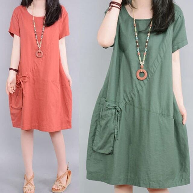 【送料無料】リネンワンピース 大きいサイズ 半袖 膝丈 ナチュラル ゆったり 武井カバー 大人可愛い カジュアル おしゃれ お出かけ デート 普段使い デイリー 着回し OP-315IU