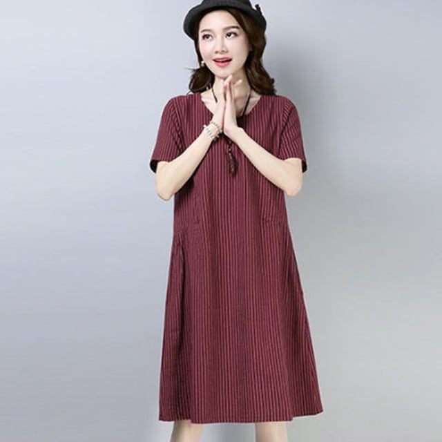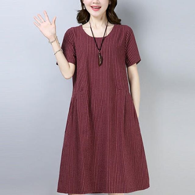 【送料無料】リネンワンピース 膝丈 大きいサイズ ナチュラル ストライプ 大人可愛い カジュアル お出かけ デート 普段使い デイリー 着回し OP-317IU