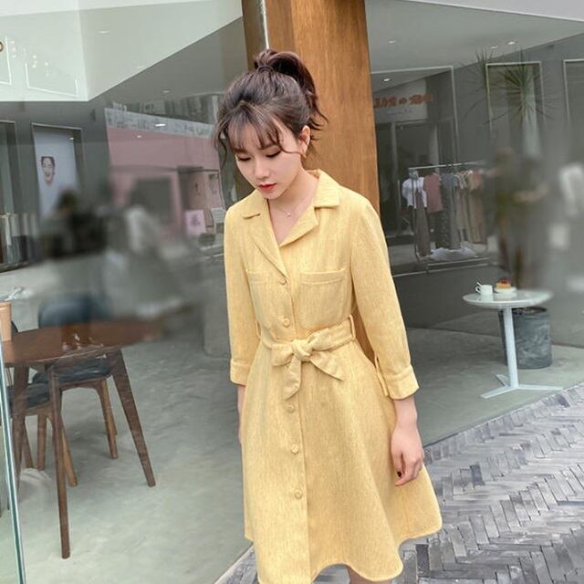 優しいイエローカラーのリネンワンピース♪