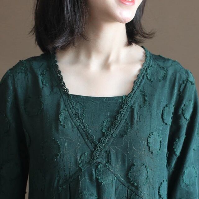 深みのあるグリーンが大人っぽいリネンワンピース♪